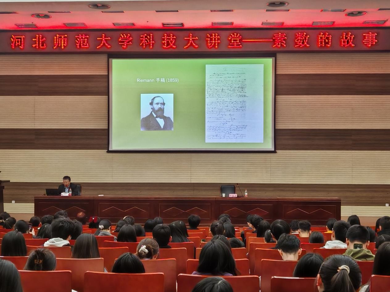 刘建亚教授以素数的故事为题,介绍了数论发展史上几大学派的学术传承与创新,特别是国际上公认的中国数论学派的学术贡献,回顾了中国数论界的三驾马车——陈景润、王元和潘承洞先生在“哥德巴赫猜想”的证明方面作出的重要贡献,分享了自己从事数学研究的经历、见闻和思考,鼓励同学们珍惜时光,勤奋学习,传承师大数学人的文化和基因。在与同学们的现场互动中,刘建亚教授就专业学习、科学研究、职业发展等问题与同学们进行了深入交流,现场气氛热烈。