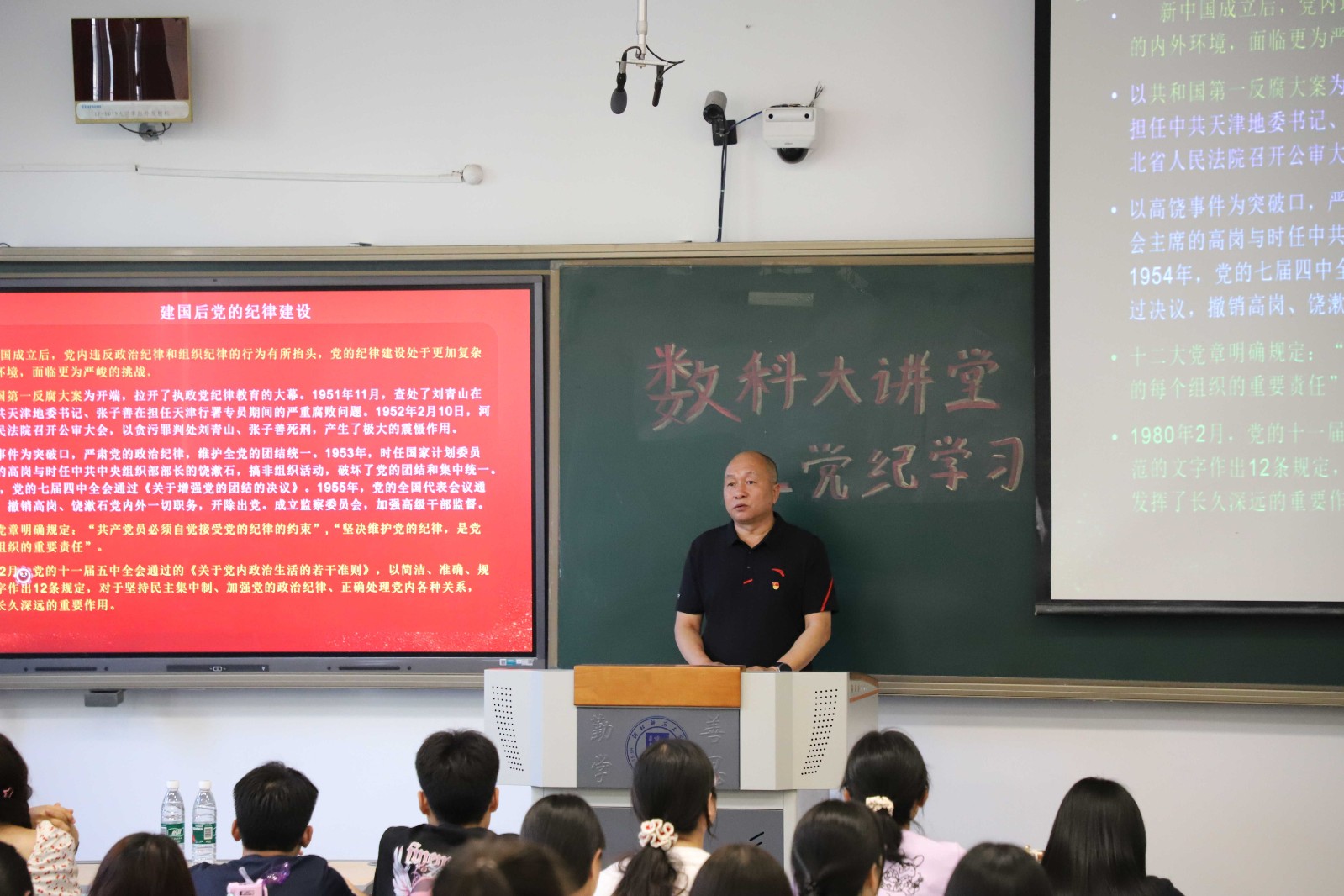 5月17日,韩国色情 在公教楼A307举办“数科大讲堂之党纪学习教育专题党课”,党委书记乔维新主讲,韩国色情 180名韩国色情党员参加学习。